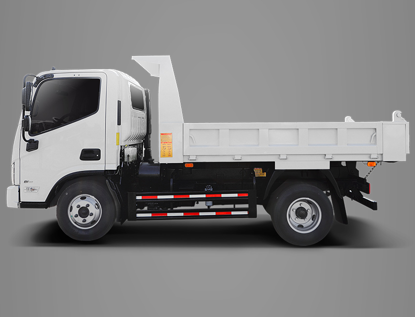 Cuenta con capacidad útil en chasis de 5,000 kg y peso bruto vehicular de 8,500 kg. Su volquete de acero Q235 con piso de 4 mm y laterales de 3 mm garantiza resistencia y durabilidad para transportar y descargar materiales con seguridad.