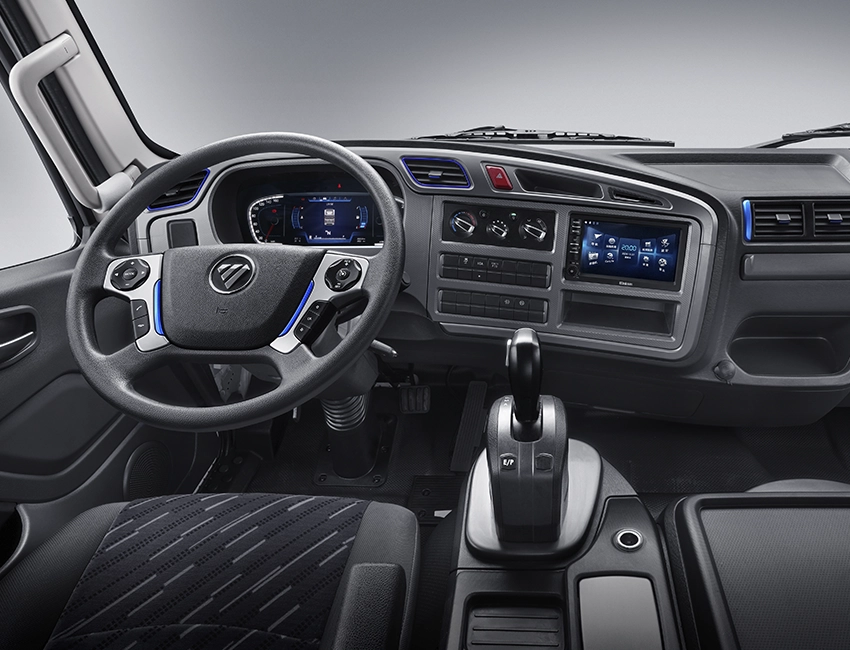 Con sistemas ABS + ESP + ASR + HSA que te protege; más cabina abatible eléctricamente, dirección asistida y asiento conductor Airride (neumático), tendrás la comodidad y seguridad que deseas en tu camión Foton. Dimensiones del chasis de 8.750 x 2.350 x 2.700 mm.