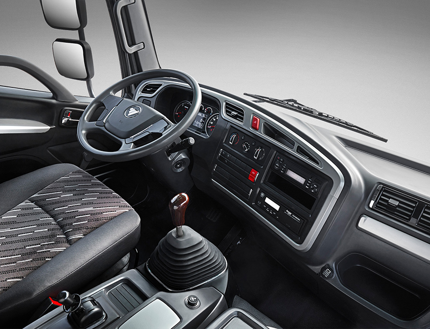 Incluye aire acondicionado, asiento neumático para conductor, volante ajustable, radio MP3 USB, cierre central, espejos eléctricos calefactados y levantamiento hidráulico de cabina. Respaldo de garantía de 2 años libre de kilometraje para el vehículo y 18 meses o 160.000 km para el motor.