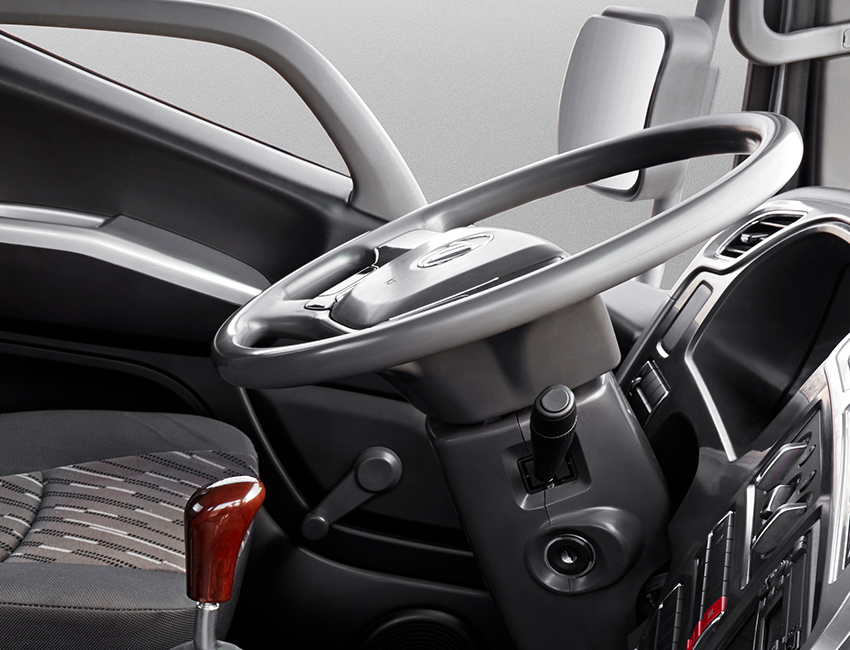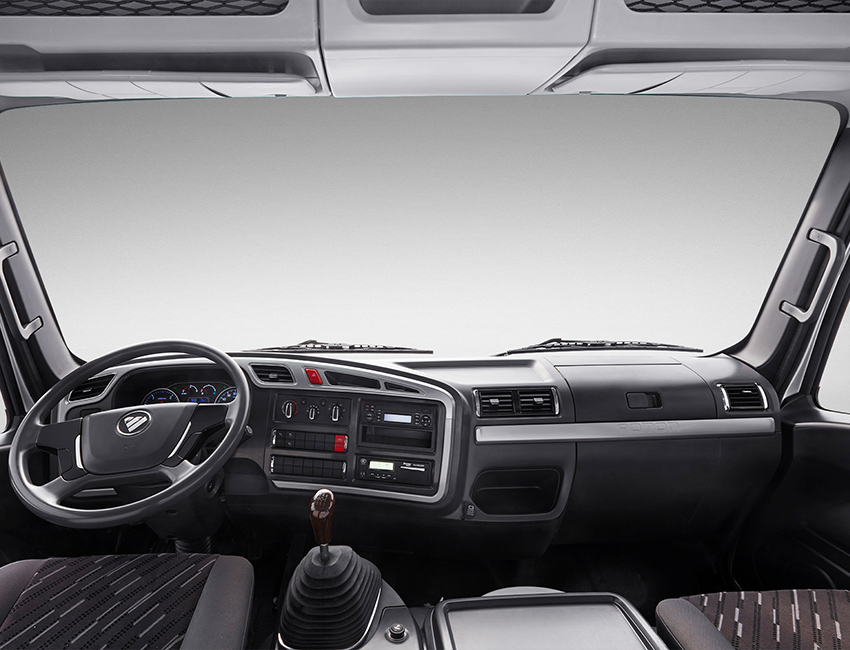 Incluye aire acondicionado, asiento neumático para conductor, volante ajustable, radio MP3 USB, cierre central, espejos eléctricos calefactables y levantamiento electrohidráulico de cabina. Respaldo de garantía de 2 años libre de kilometraje tanto para el vehículo como para el motor, asegurando durabilidad y confianza.