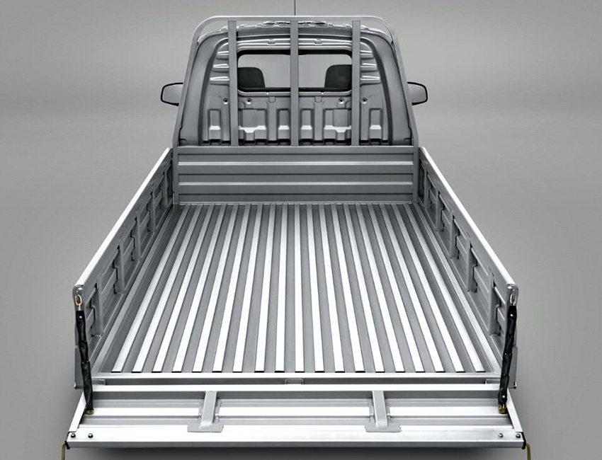 Su sólida estructura permite una carga útil de hasta 1.3 toneladas, lo que lo convierte en una herramienta eficiente para negocios que requieren transporte diario de mercancías. La batea, con dimensiones de hasta 2 metros, ofrece una plataforma práctica y funcional.