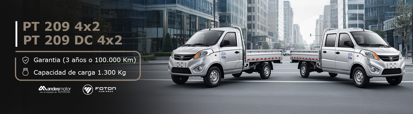 El Foton PT 209 4x2 es un camión liviano versátil y confiable, ideal para operaciones urbanas y de reparto. Disponible en versiones de cabina sencilla y doble, combina eficiencia, practicidad y comodidad para el trabajo diario.